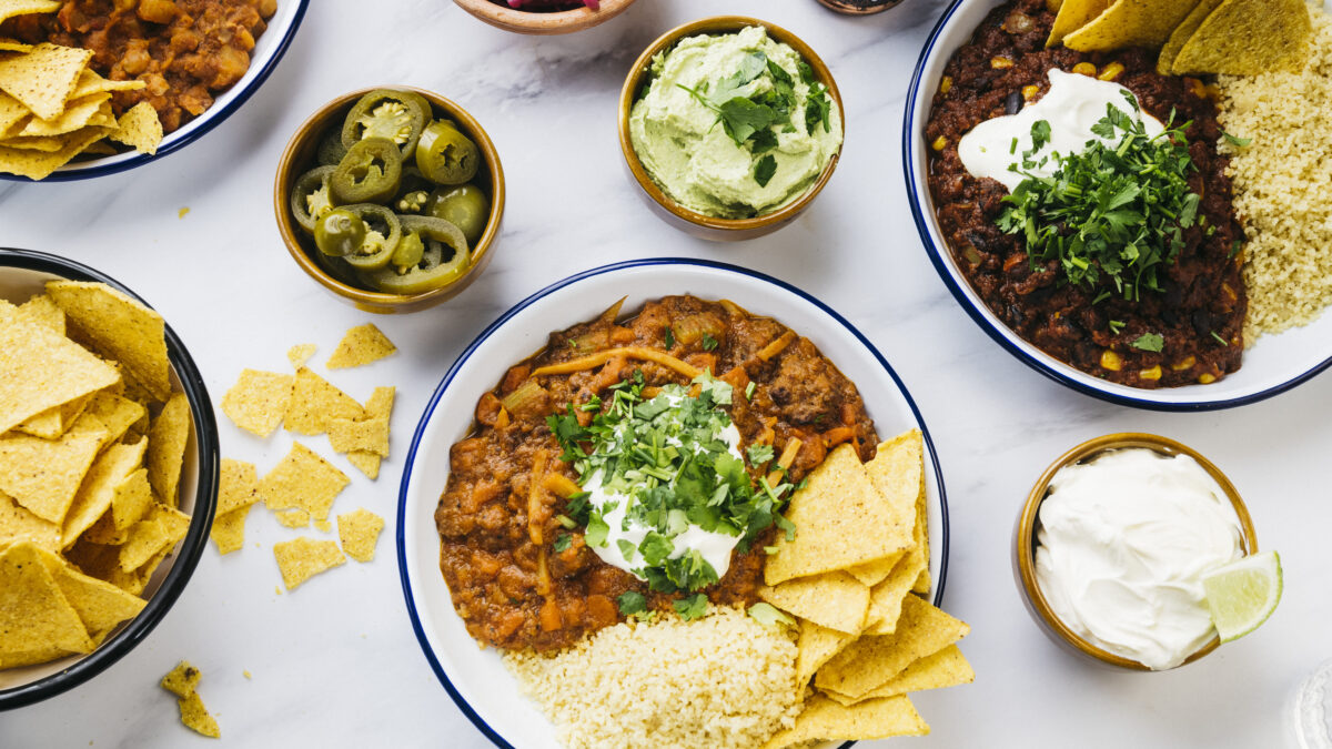 Unsere Speisekarte halten wir extra klein, um die Qualität so hoch wie möglich zu halten. #NOBULLSHIT 4 Chili-Kreationen gibt’s immer: Zwei davon mit Fleisch, zwei vegan. Dazu servieren wir Couscous, Sour Cream und Nachos. Außerdem haben wir wechselnd ein Chili der Woche im Angebot – immer aus einem anderen Teil der Welt.
