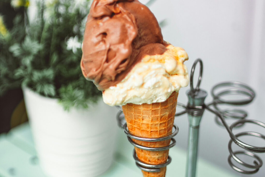 frisch gebrühter Kaffee, selbstgebackener Kuchen, herzhafte Snacks und Eis in einem entspannten, freundlichen Ambiente