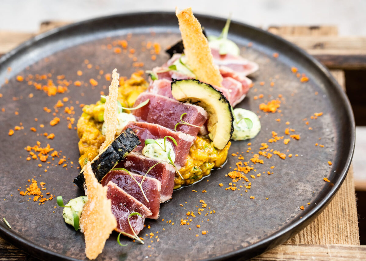 Zeitgemäße Bistronomy-Küche, deren Kerngedanke die Wertschätzung und damit möglichst geringen Prozessierung der eingesetzten Produkte ist, hat sich das Küchenteam um Florian Ruß auf die Fahnen geschrieben. Dazu noch eine nicht unerhebliche Auswahl an Bio- und Naturweinen sowie Cocktails, und der Abend ist gerettet.