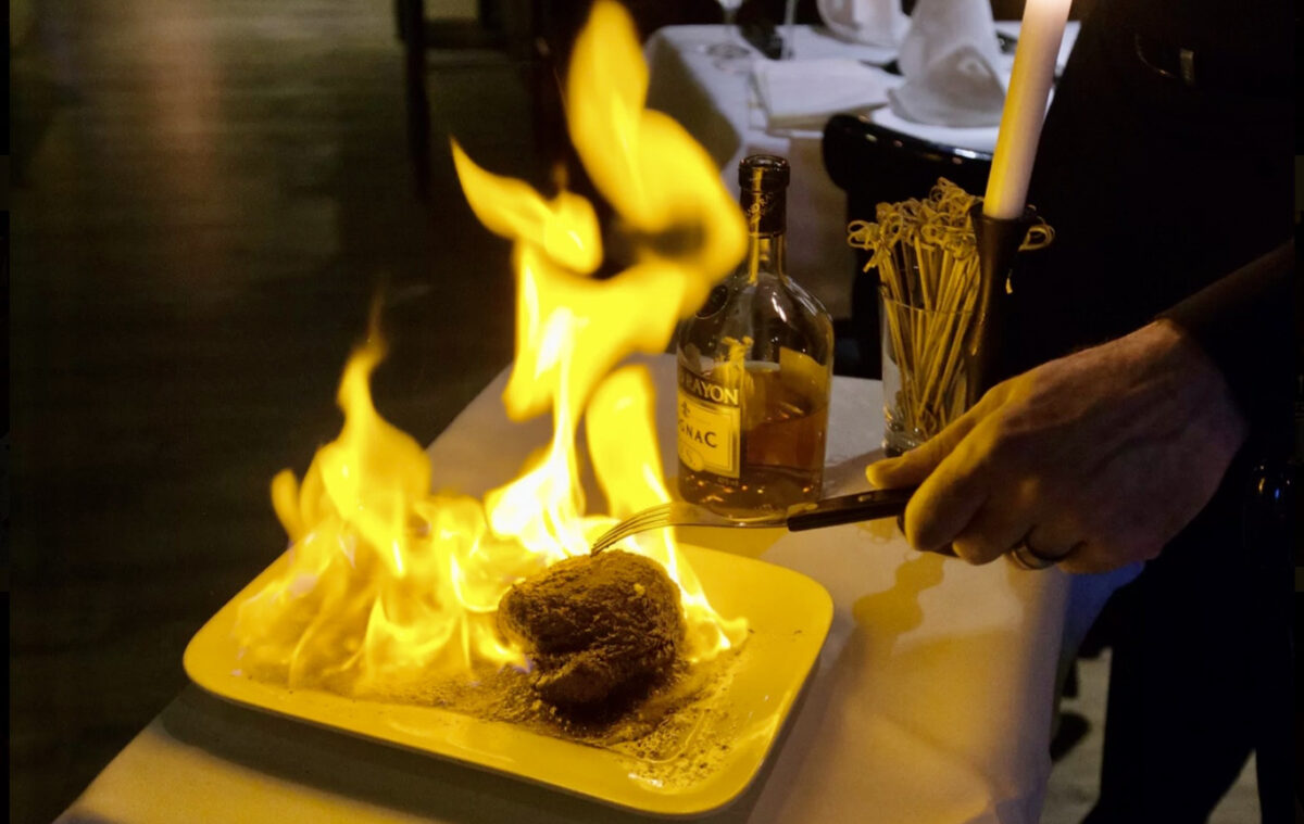 Für Connaisseure besteht die besondere Möglichkeit, das Filet mit würziger Krustenummantelung am Beistelltisch mit edlem Wiskey oder Cognac flambieren zu lassen. Dadurch werden die Aromen