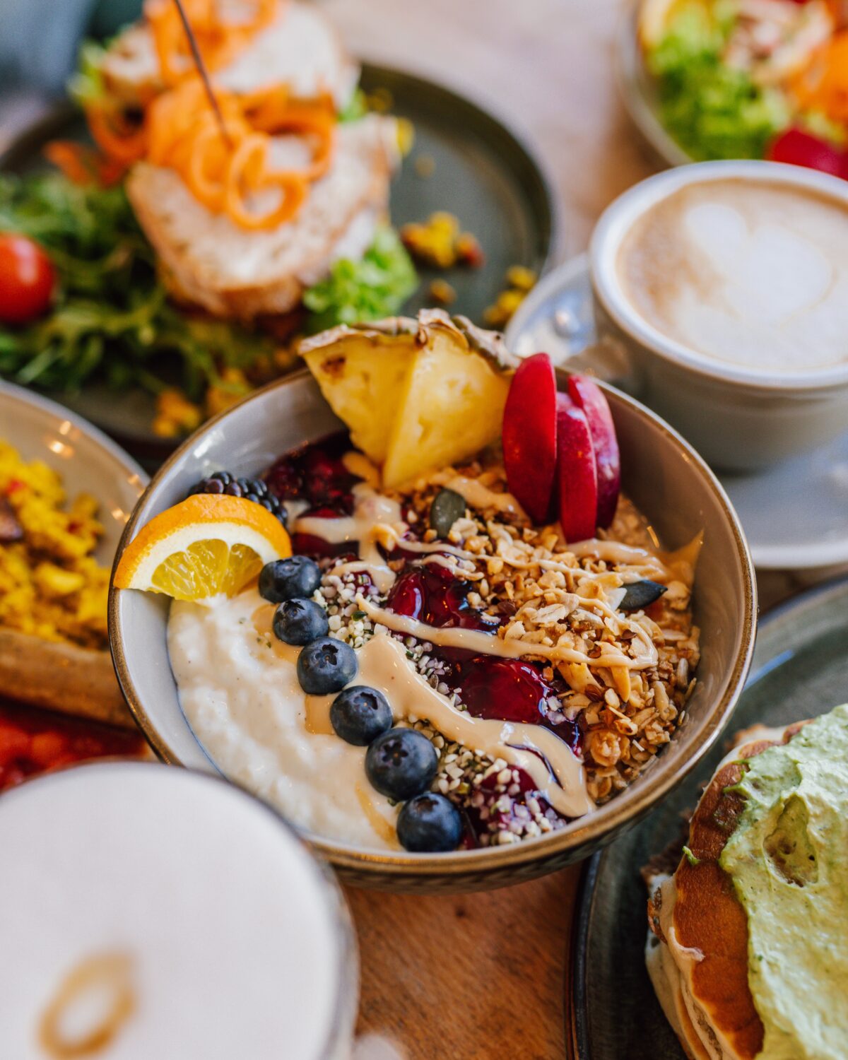 An unseren zwei Standorten vereinen wir vier verschiedene Konzepte: Lunch, Fine Dining, Flammkuchen & Wochenend-Brunch. In der Bonner Südstadt könnt ihr Mo-Fr unsere wöchentlich wechselnde Mittagskarte sowie unsere leckeren Kuchen, Bagels, Overnight Oats & Co. genießen. Am Standort Bonn Poppelsdorf bieten wir darüber hinaus auch noch Fine Dining (Do-So), gesellige Flammkuchen-Abende (Di+Mi) sowie unseren heißbegehrten Brunch am Wochenende an. Sämtliche Speisen könnt ihr sowohl vor Ort genießen oder mit nach Hause/zur Arbeit/ins Office/die Uni oder einfach nur den park mitnehmen – in unseren umweltfreundlichen Mehrwegbehältern.