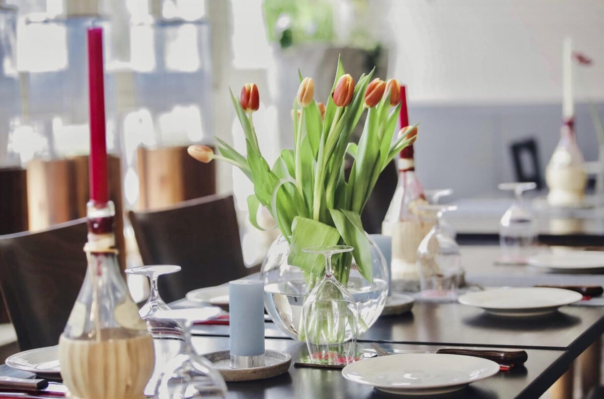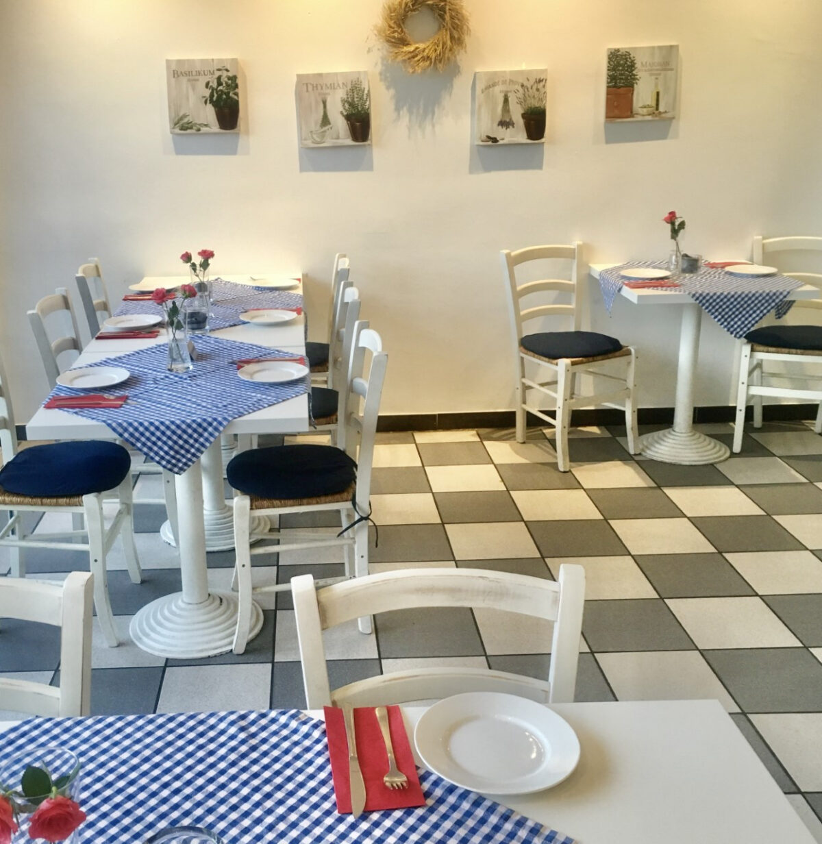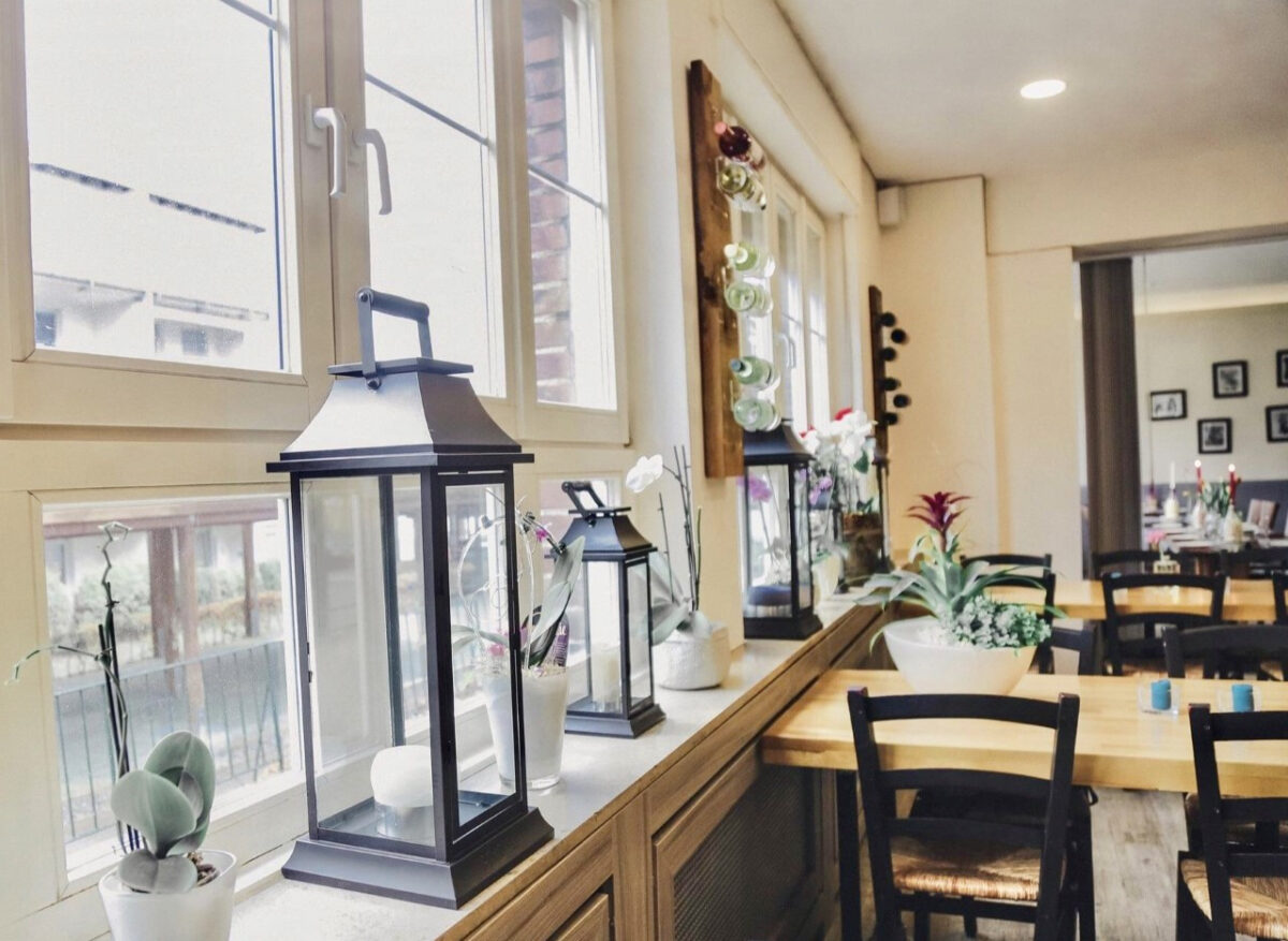 Der moderne Restaurantbereich verfügt über 50 Plätze und im vorderen Bereich zur Terasse sitzen Sie in einer charmant eingerichteten Trattoria. Die grüne Terasse mit 24 Plätzen unter großen Schirmen ist sehr beliebt.