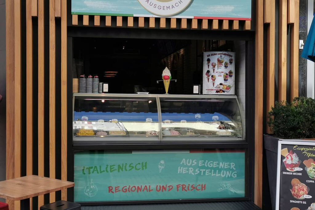 Gelatissimo überzeugt mit täglich neuen, ausgefallenen Eissorten, hausgemachten Donuts, extravaganten Freakshakes, Eisnuts und einer großen Waffel‑Auswahl – alles frisch und kreativ im eigenen Eislabor zubereitet. Ob klassische Milch‑ und Fruchteissorten, vegane Kreationen oder neuerdings Protein‑Eis – hier findet jeder sein süßes Highlight. Die offene Sitzecke innen und die gemütliche Außenterrasse laden zum Ausruhen ein, ideal nach einem Stadtbummel oder als süße Auszeit.