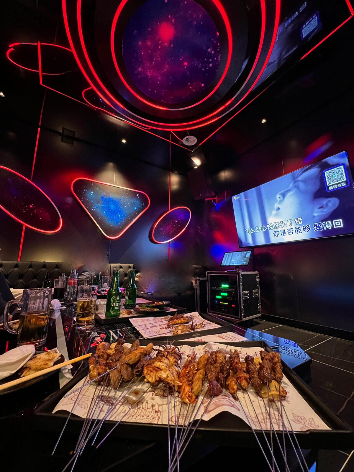 Authentische chinesische BBQ-Spieße Restaurant & stylische Karaoke-Räume mit futuristischem Design – dein Hotspot für Essen, Spaß & Nightlife.