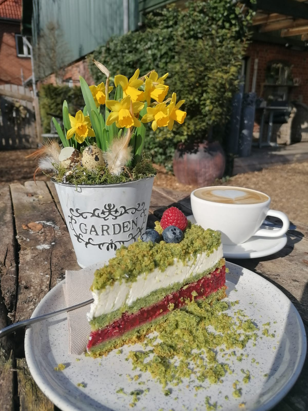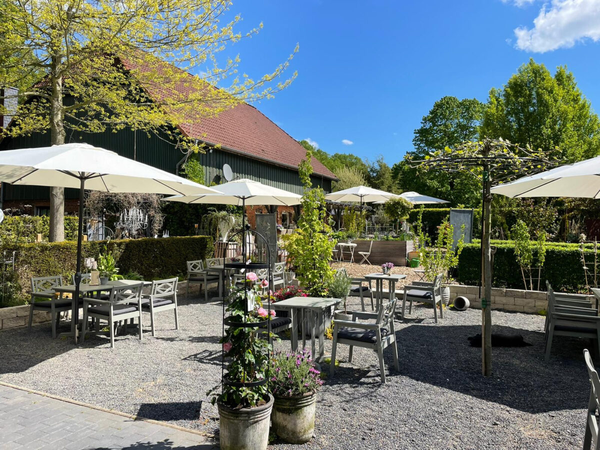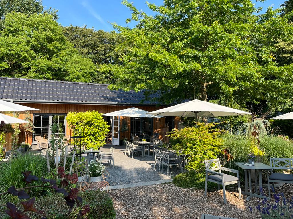 Das Café liegt im malerischen Schaugarten des Hofs und bietet eine ganz besondere Atmosphäre. Ob man im Sommer die Natur genießt oder es sich an kühleren Tagen im Inneren am Ofen oder in den beheizten Gewächshäuschen gemütlich macht – der Hof Büge ist ein Ort, an dem man gerne verweilt und den Moment genießt.