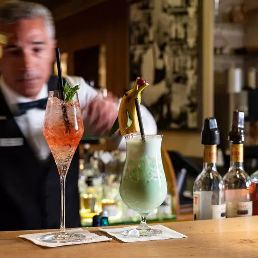 Die Tageskarte an unserer Hotelbar enthält innovative, unkonventionelle Cocktails ebenso wie beliebte Klassiker. Eine große Auswahl an Weinen, Bieren, Schnäpsen und alkoholfreien Getränken lädt zum Verweilen in der gemütlichen Lounge-Atmosphäre ein.