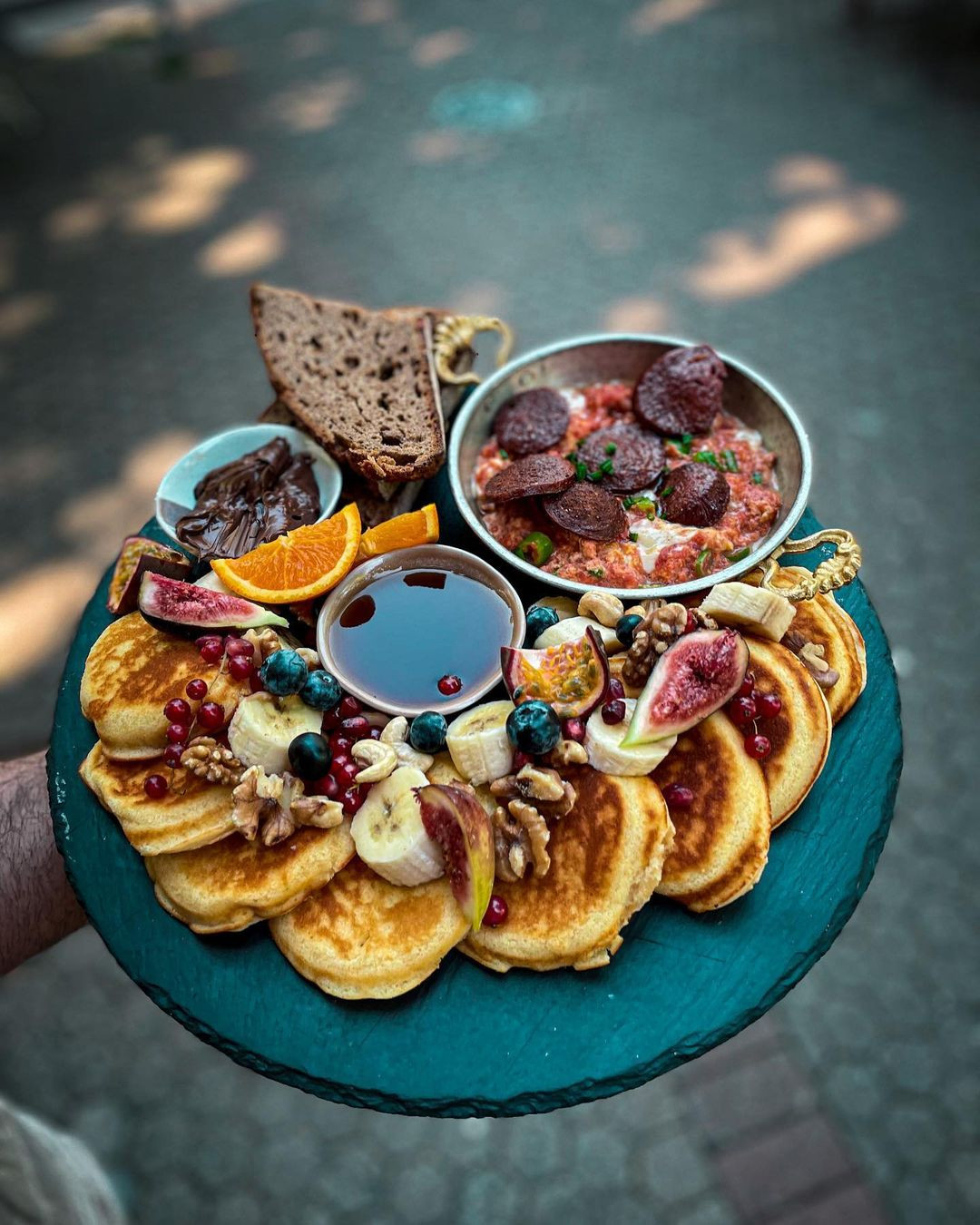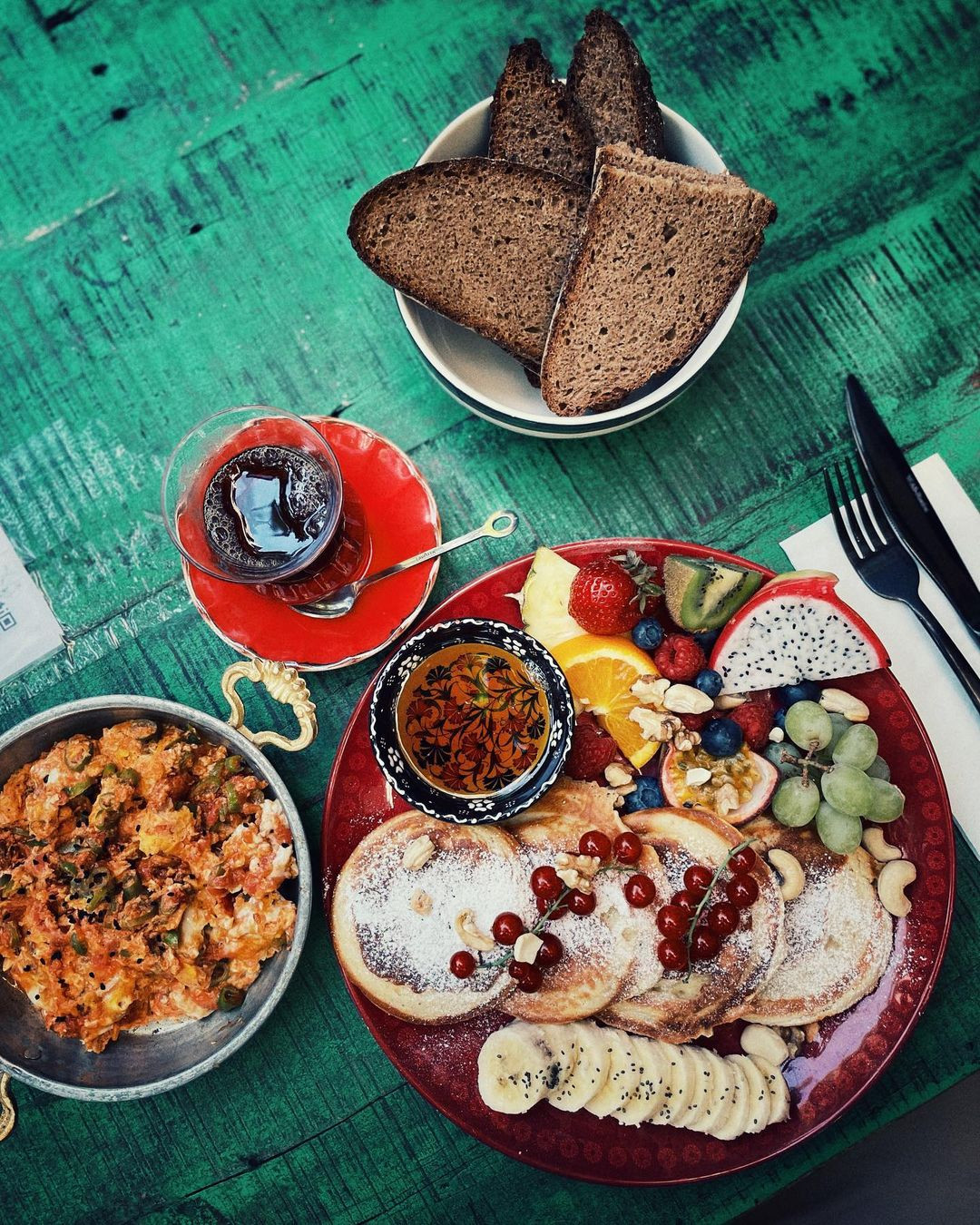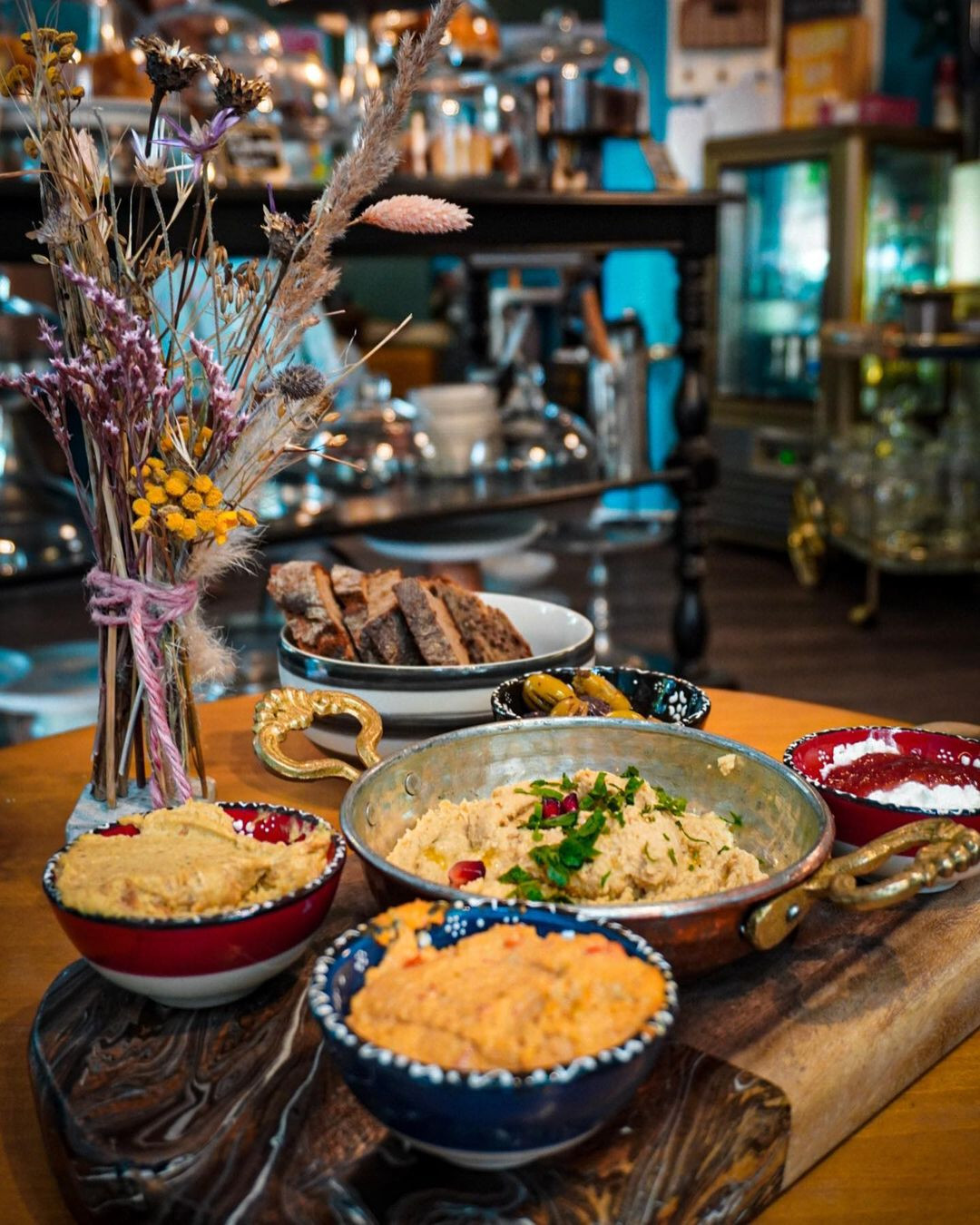 Auch orientalisch angehauchtes Frühstück mit hausgemachten Brot und verschiedenen Dips gibt es.