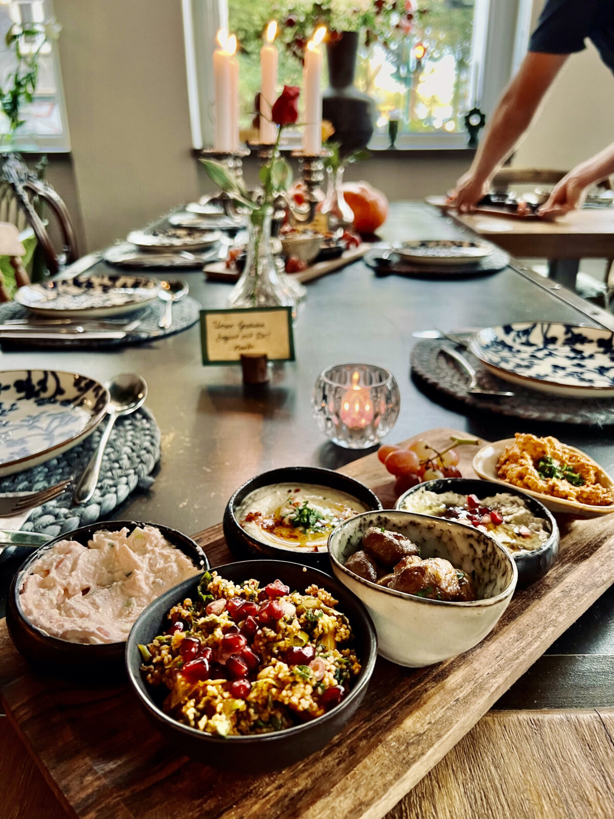 Während es beim Frühstück mit Rührei, Croissant und griechischem Joghurt europäisch zugeht, stehen auf der Abendkarte neben spanischen und italienischen auch arabische Tapas. Deshalb hat sich Nessi im vorderen Teil des Cafés von europäischen Stilen inspirieren lassen. Die Decke ist grün berankt, überall sind Blumen drapiert, selbst an den Lampen.