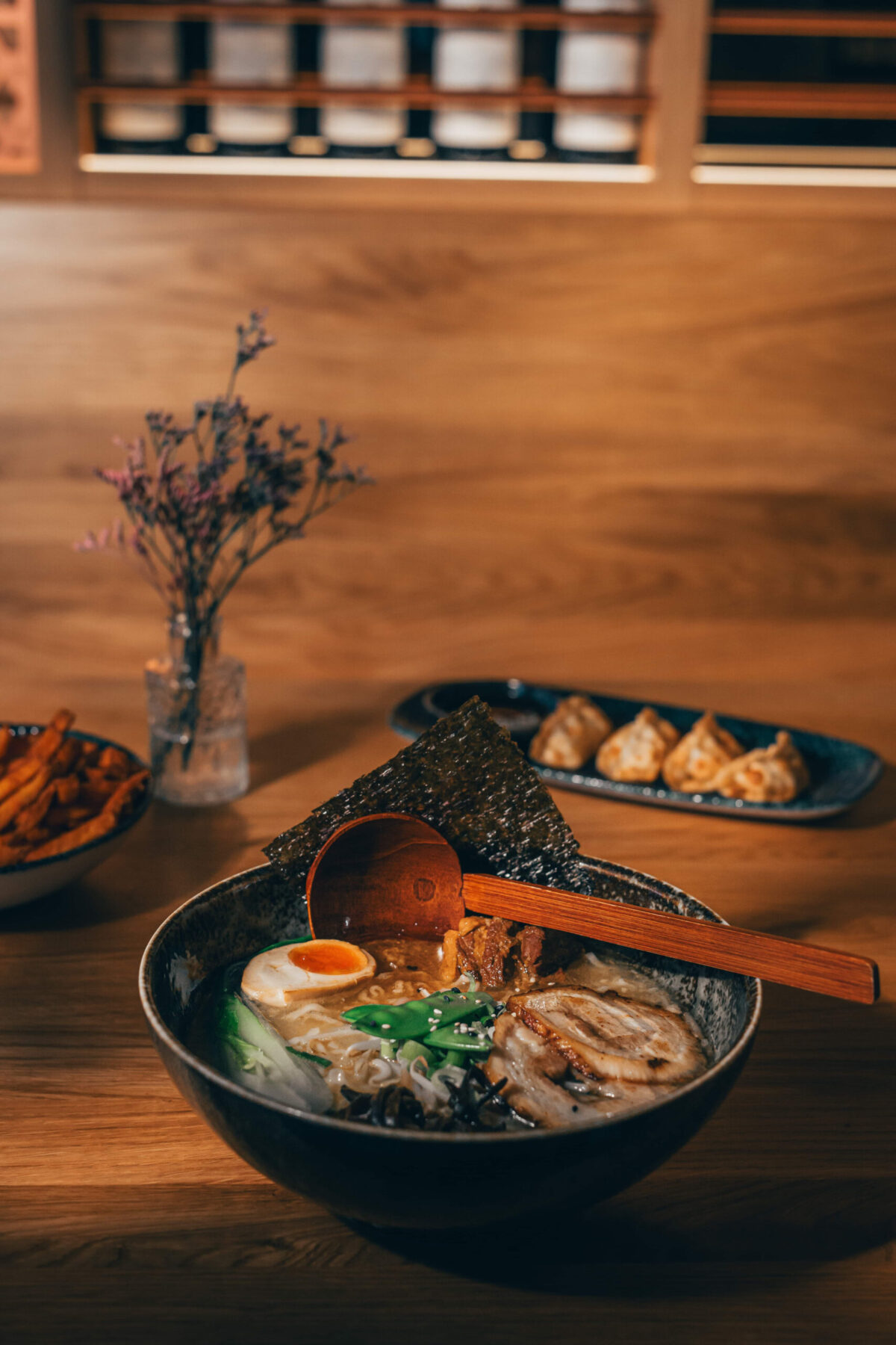 Minimalistisches Design trifft auf kreative Küche: Ramen mit traditoneller Brühe, Sushi mit feinem Handwerk und Fusion Grillgerichte – inspiriert von Tradition, neu gedacht für heute.
