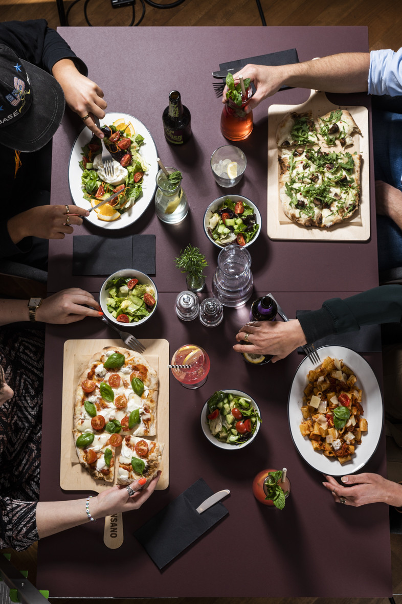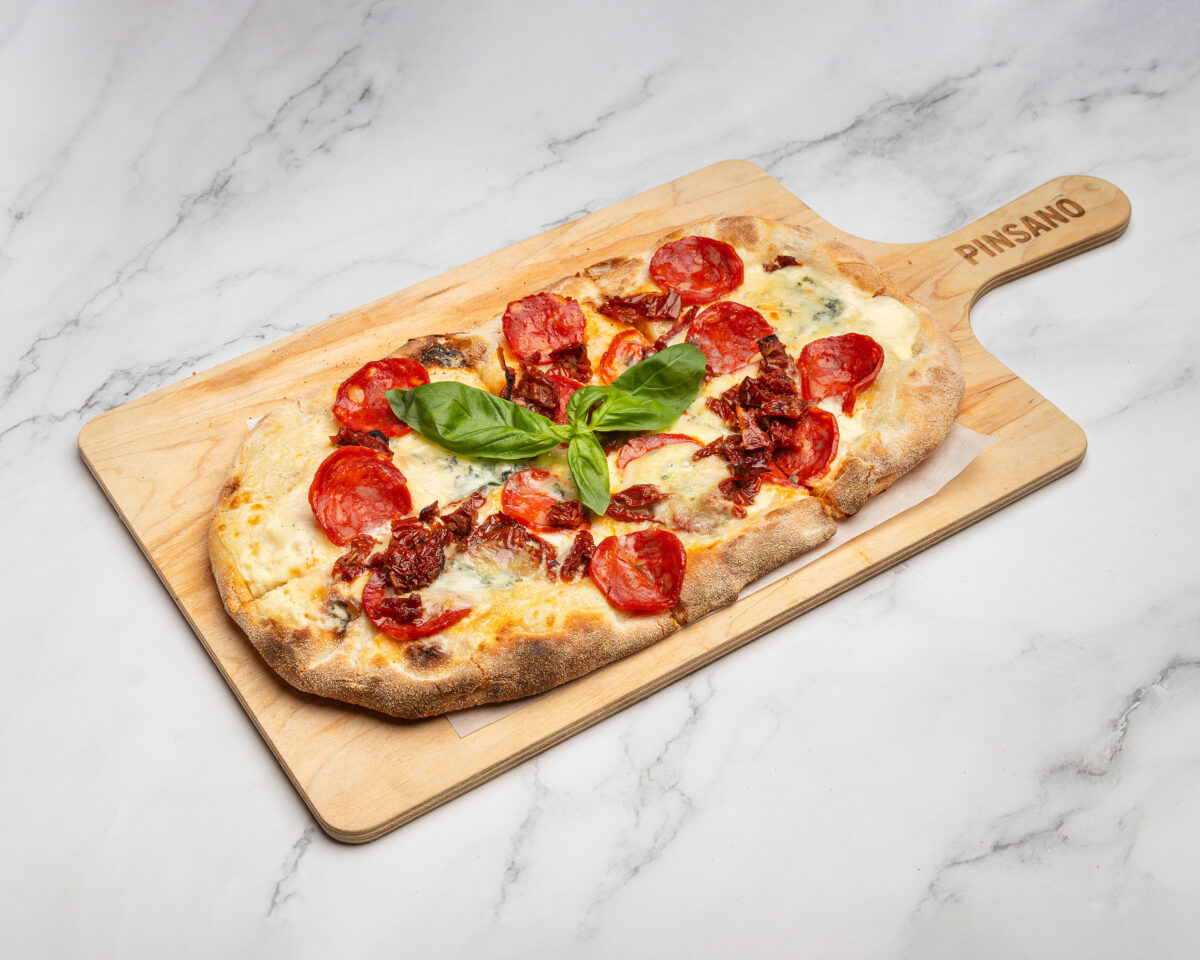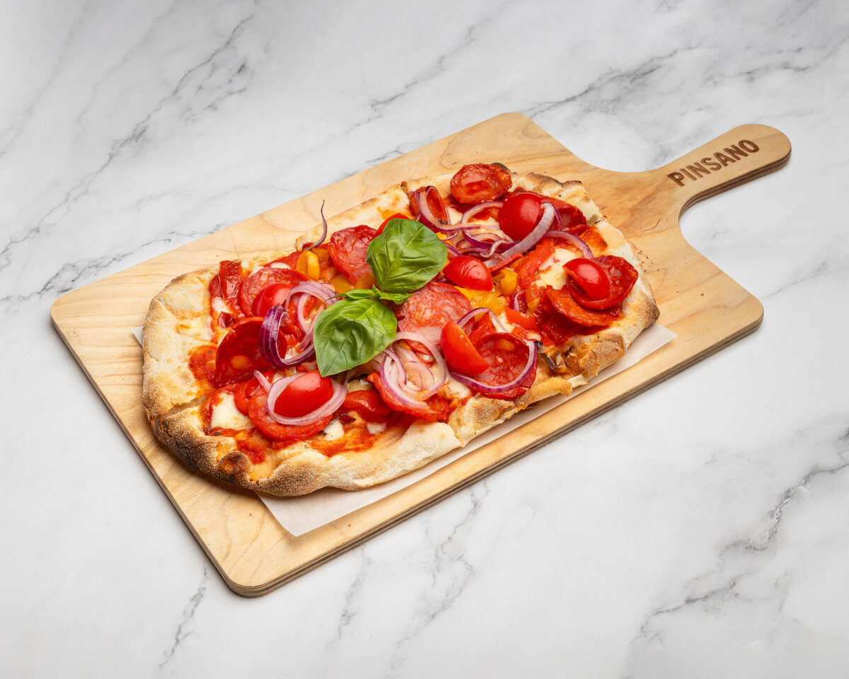 “Wir – das sind Frank mit Familie, Sergio und Danny – die Gründer und damit sowas wie die Ur-Famlie des Pinsano. Die Pinsa ist tatsächlich leichter als eine klassische Pizza. Nur im Klang ähneln sie sich, sonst sind die beiden Hübschen ganz schön unterschiedlich: Pinsa ist kalorienärmer und leichter verdaulich – das liegt vor allem am vorgegärten Teig (bis zu 72 Stunden – sprich: Der Teig gärt nicht in Eurem Bauch weiter). Ein Pizza-Teigling ist sehr dicht – die Pinsa dagegen eher wolkenartig – außen knusprig, innen fluffy. Ihre hochfeinen & komplexen Aromen machen den Teigling zu viel mehr als einer Basis für den Belag: Der Teig an sich schmeckt sehr fein und ist auch nur mit Olivenöl und Kräutern ein Genuss.”