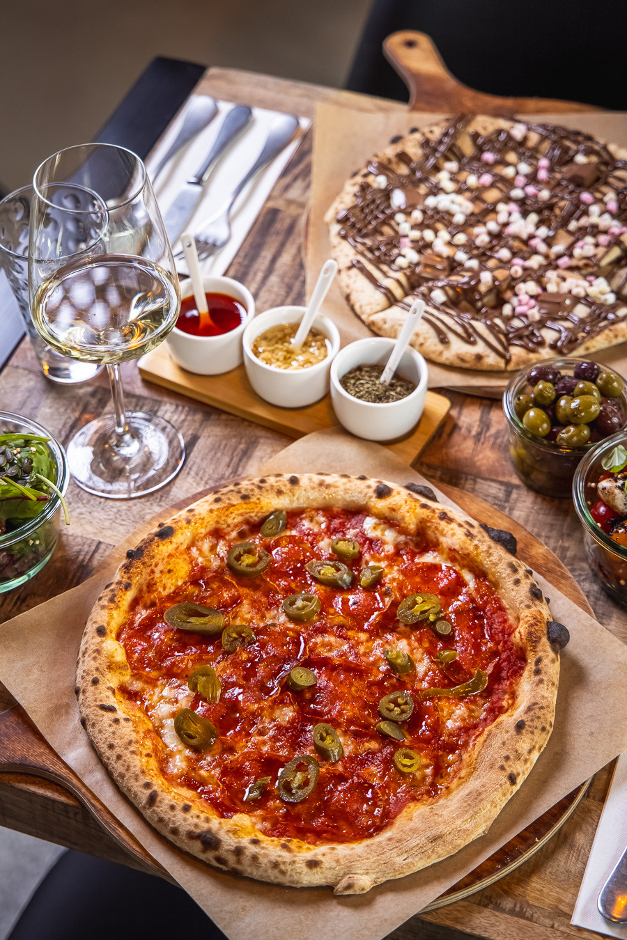 Neapolitanische Pizza mit ungewöhnlichen Toppings, 50 Stunden Teigruhe und Sauerteigkulturen, eine Hochwertige Weinauswahl aus Italien und Deutschland.